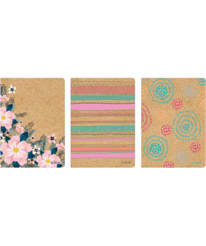 Bllok shënimesh Herlitz në format A5, me kopertinë prej letre kraft dhe dizajne dekorative të përziera. I përshtatshëm për shënime të përditshme, ide kreative, shkollë apo përdorim personal.