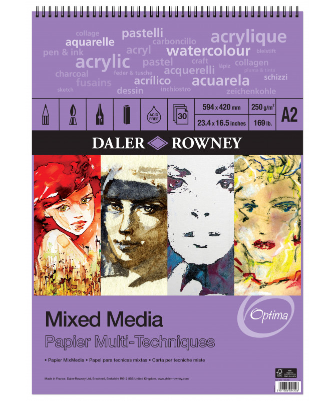 BLLOK MIXED MEDIA ME SPIRALE OPTIMA, A2 250gsm 30fletë DALER ROWNEY