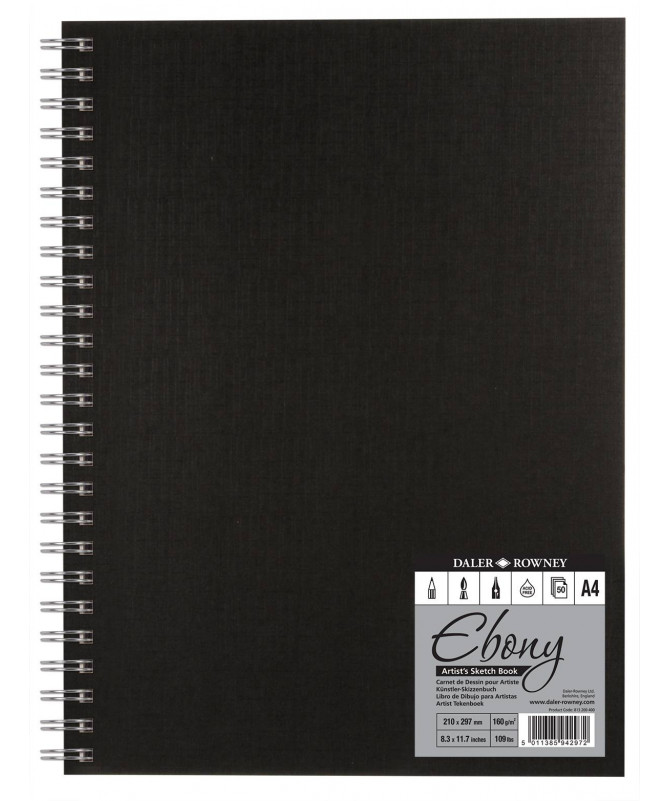 Blloku për skicim Ebony nga Daler-Rowney është krijuar për artistë që kërkojnë letër cilësore dhe të qëndrueshme për vizatim dhe skicim. Letra e bardhë 160gsm ofron sipërfaqe të pastër, të lëmuar dhe rezistente, e cila e mban mirë vijën dhe detajet, duke e bërë ideale për teknika të thata, laps, qymyr, penë dhe bojë.