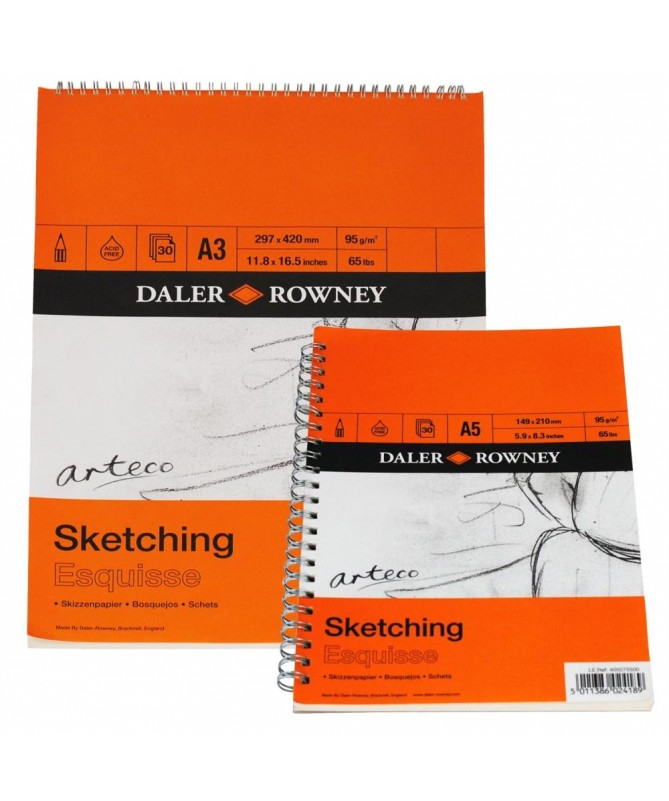 Blloku Daler-Rowney Arteco me kapëse spirale ofron një sipërfaqe të butë me strukturë mesatare (medium grain), e cila është ideale për vizatim me laps grafiti, lapsa me ngjyrë dhe qymyr artistik.