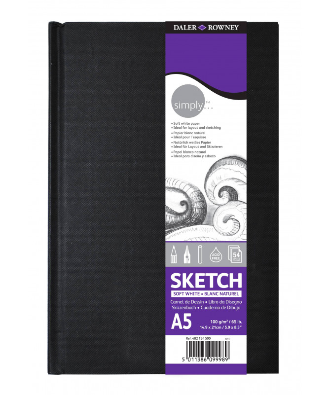 Daler-Rowney Simply Sketchbook është një bllok vizatimi i lehtë për përdorim të përditshëm, i përshtatshëm për nxënës, studentë dhe artistë hobi. Përmban letër të bardhë me teksturë të mesme (medium grain), ideale për çdo teknikë të thatë.