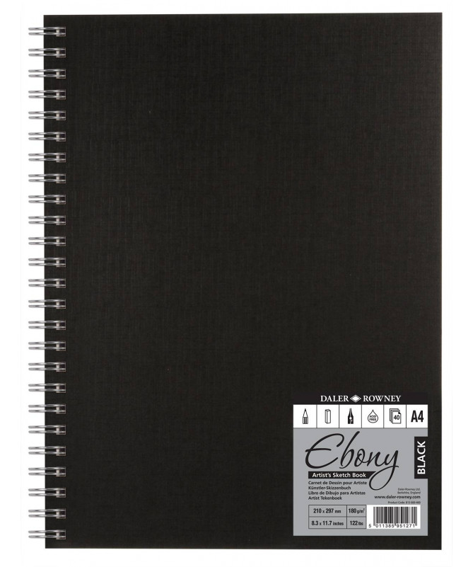 Blloku Ebony nga Daler-Rowney është dizajnuar për artistë që kërkojnë cilësi të lartë dhe letër të zezë premium për skicim dhe vizatim. Kapaku i fortë hardback dhe spiralet e bëjnë të qëndrueshëm, praktik dhe të përshtatshëm për përdorim brenda dhe jashtë studios.