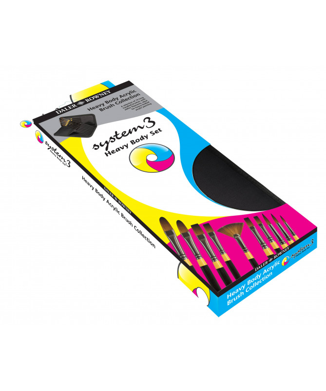 Seti System3 Heavy Body me 10 brusha me dorezë të gjatë vjen i paketuar në një kuti praktike me zinxhir, perfekte për artistë që pikturojnë me akrilik dhe kërkojnë cilësi dhe komoditet.