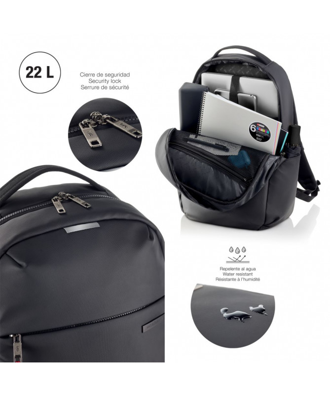 Çantë shpine për laptop Miquelrius është projektuar për përdorim të përditshëm profesional dhe udhëtime, duke ofruar hapësirë të bollshme dhe organizim funksional. Ka ndarje të dedikuar për laptop, xhepa të shumtë për aksesorë dhe dokumente, si dhe material poliestër cilësor me veshje rezistente ndaj ujit për mbrojtje afatgjatë. Dizajni ergonomik siguron rehati gjatë mbajtjes, ndërsa kapaciteti i madh e bën të përshtatshme për punë, udhëtime biznesi dhe përdorim ditor.