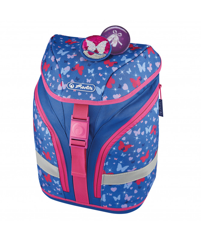 Çanta shkollore Herlitz SoftLight Butterfly (Empty) është e projektuar për nxënësit e klasave fillore, duke kombinuar ergonominë, sigurinë dhe një dizajn të bukur me motive fluture për përdorim të përditshëm shkollor.