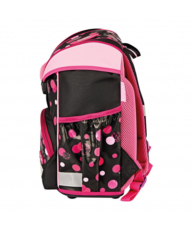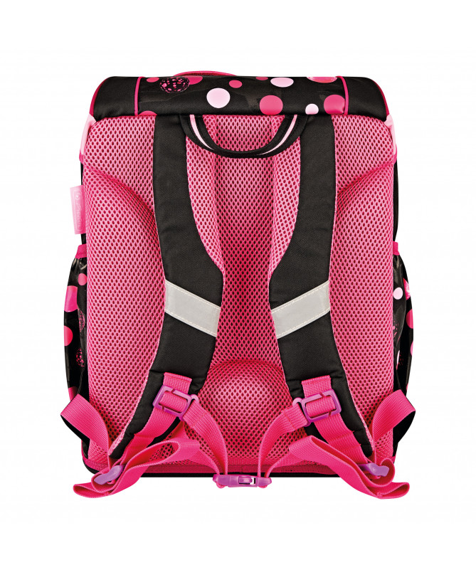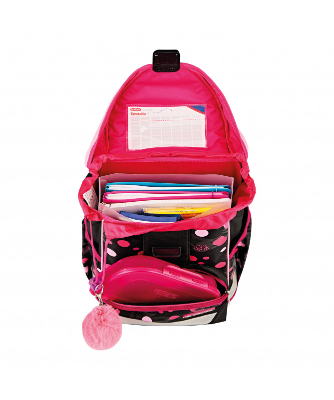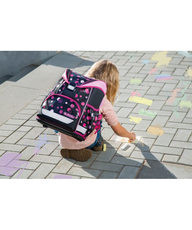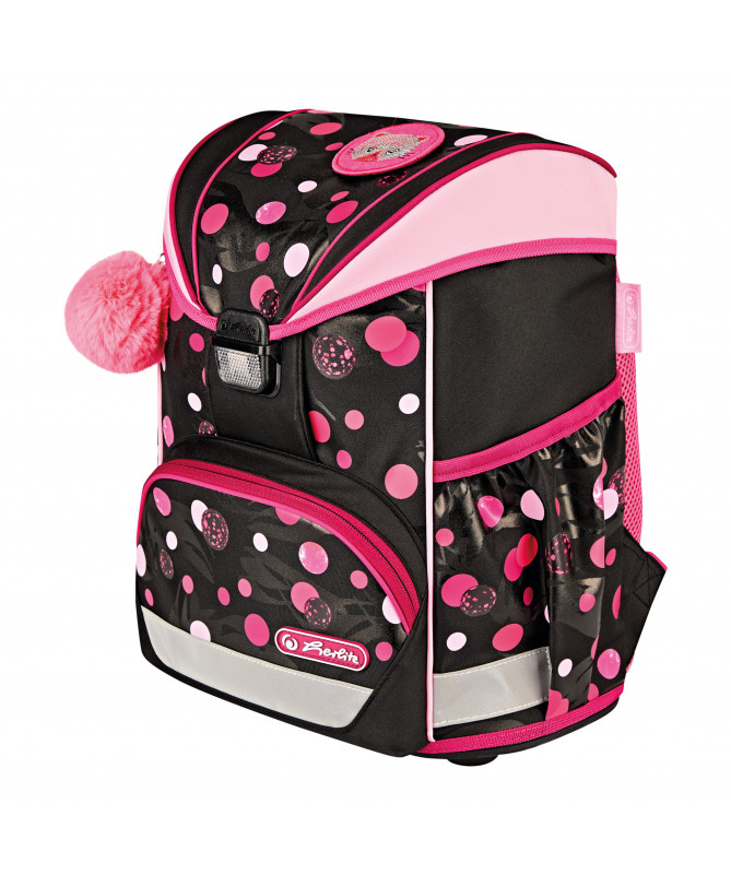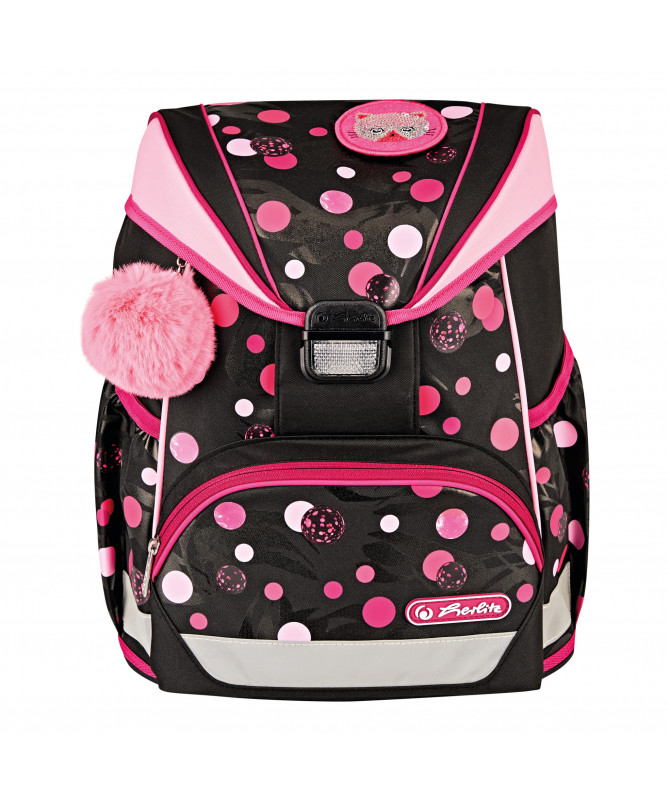 Çanta shkollore Herlitz UltraLight Cats & Dots (Empty) është e dizajnuar për nxënësit e klasave fillore, duke u fokusuar në peshë jashtëzakonisht të lehtë, rehati maksimale dhe një dizajn të gëzueshëm me motive maceje dhe pika.