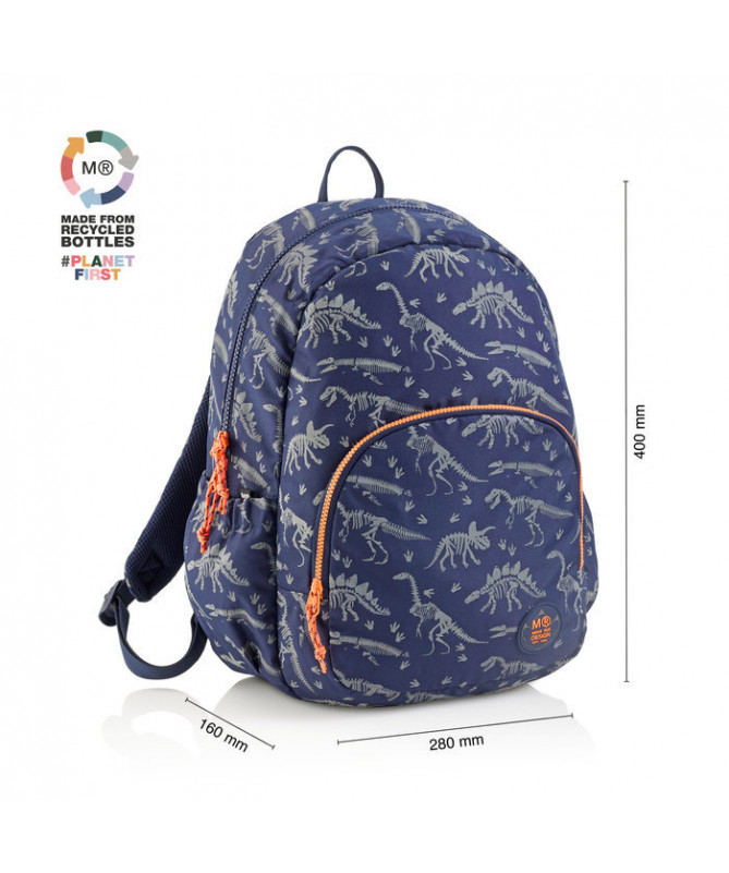 Çantë DinoWorld Roma me dy ndarje, e përshtatshme për përdorim të përditshëm. Ofron hapësirë të organizuar për libra, fletore dhe pajisje personale, me xhepa anësorë praktikë për shishe ose sende të vogla.