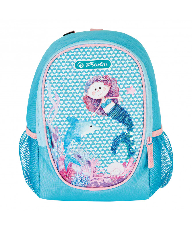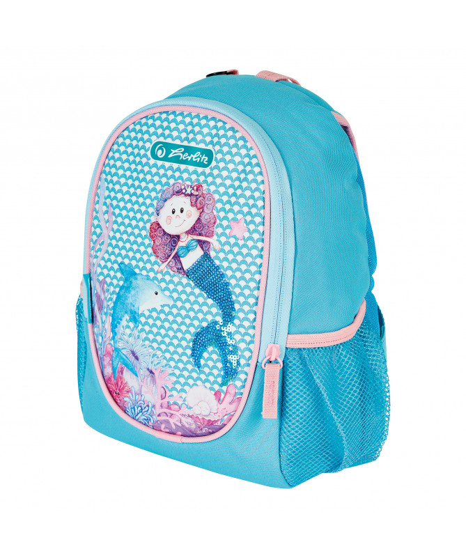 Çantë e vogël për fëmijë nga Herlitz, e përshtatshme për kopsht dhe përdorim të përditshëm. Dizajn irheqës me motiv sirene, e lehtë dhe ergonomike, e ndërtuar për rehati dhe përdorim praktik nga fëmijët.