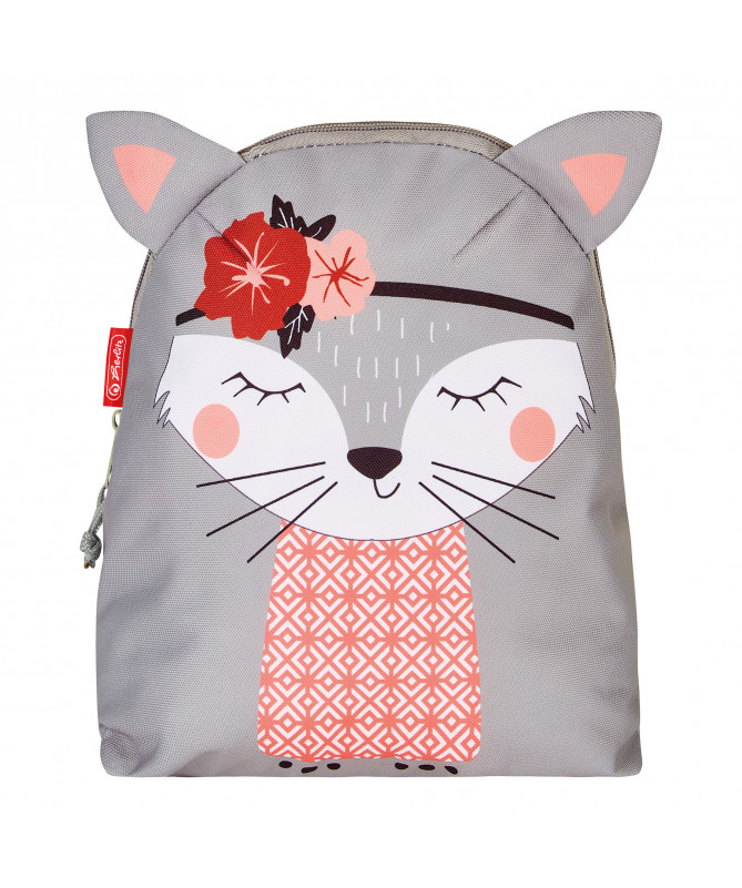 Çantë e vogël për fëmijë nga Herlitz, e përshtatshme për kopsht dhe përdorim të përditshëm. Dizajn i ëmbël me motiv maceje, i lehtë dhe praktik për transportimin e gjërave bazë të fëmijëve.
