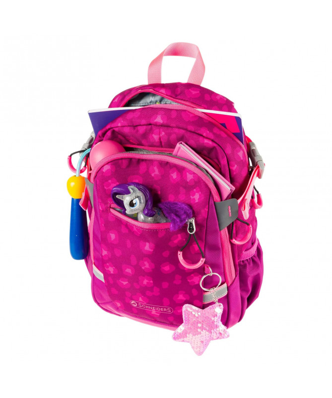 Çantë e vogël për fëmijë nga Schneiders, e përshtatshme për kopsht, shëtitje dhe përdorim të përditshëm. Dizajn i lehtë dhe praktik, i kombinuar me materiale rezistente ndaj ujit dhe elemente reflektuese për siguri më të lartë.