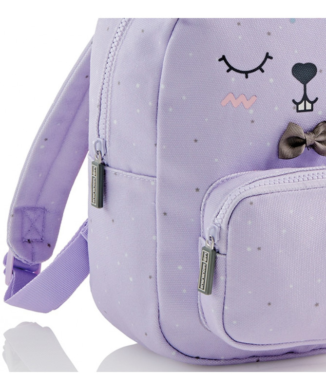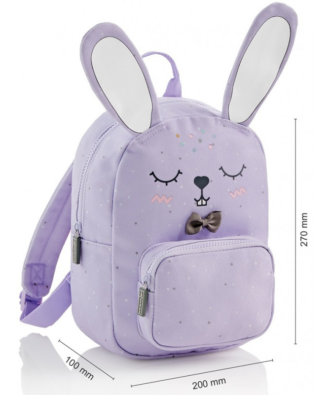 Çantë mini për fëmijë nga Miquelrius, e përshtatshme për shëtitje dhe aktivitete në kohë të lirë. Dizajn i butë dhe argëtues me motiv lepurushi nga seria Bunny Wild Puppies, e lehtë dhe praktike për mbajtjen e sendeve të vogla personale.