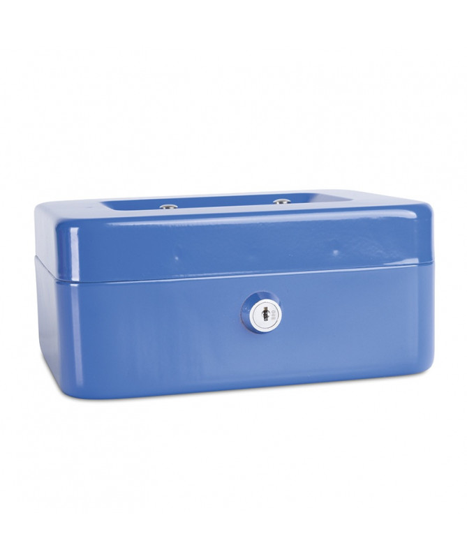 Përmasa: 200 × 90 × 160 mm · Materiali: Metal · Ngjyra: Blu · Mbyllja: Bravë me 2 çelësa · Pesha: ~1.1 kg
