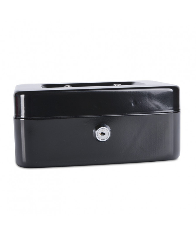 Cash Box metalik DONAU, madhësi medium, i përshtatshëm për ruajtje të sigurt të parave të gatshme në dyqane, zyra dhe ambiente shërbimi. Konstruktion metalik i qëndrueshëm me shtresë mbrojtëse, tabaka për monedha, dorezë për bartje të lehtë dhe mbyllje me bravë.