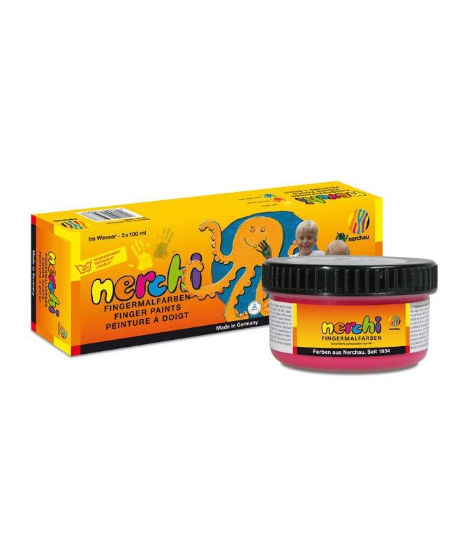 Ngjyrë gishti nga marka NERCHAU, e përshtatshme për fëmijë, aktivitete kreative dhe punë edukative. Ka teksturë të butë dhe përhapet lehtë me gishta, duke stimuluar kreativitetin dhe zhvillimin motorik. Formula është me bazë uji, lahet lehtë nga duart dhe shumica e sipërfaqeve të zakonshme.