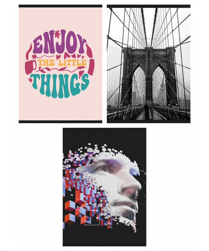 Fletore shkollore e formatit A4 me vija (dikto), e dizajnuar për përdorim të përditshëm në shkollë, universitet apo zyrë. Modeli GIMBOO dallohet për kopertina moderne me dizajne të ndryshme artistike, të cilat e bëjnë fletoren vizualisht tërheqëse dhe praktike në të njëjtën kohë.