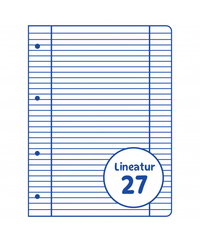 E pajisur me linjë nr. 27 (vija horizontale) me dy margjina, kjo fletore mundëson organizim të qartë dhe shkrim të rregullt të shënimeve. Spirala metalike e fortë (Twin-Wire) siguron hapje të plotë dhe përdorim praktik në çdo pozicion. Fletët janë të shpuara në 4 pika dhe të pajisura me mikroperforim, për shkëputje të lehtë dhe të pastër.