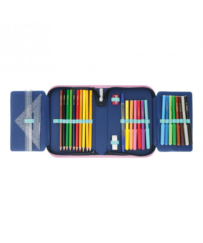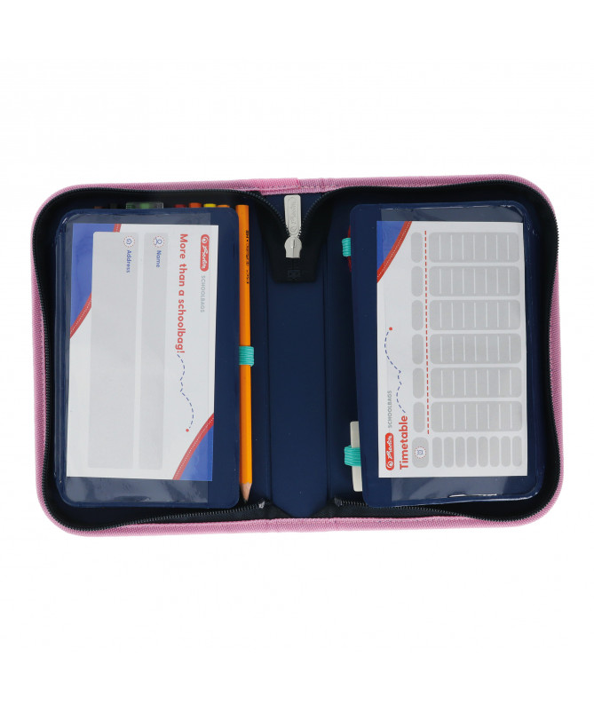 Fotrollë e mbushur Herlitz Unicorn – 31 pjesë, ideale për nxënës që duan organizim të plotë dhe dizajn tërheqës. E prodhuar nga poliester cilësor, me dy flapa të brendshëm dhe hapje të plotë, kjo fotrollë ofron hapësirë të bollshme për lapsa, stilolapsa dhe mjete shkrimi. Përmban 31 artikuj shkrimi, përfshirë lapsa druri të certifikuar FSC dhe stilolapsa felt, me shtresë të brendshme me ngjyra për pamje moderne dhe funksionale.