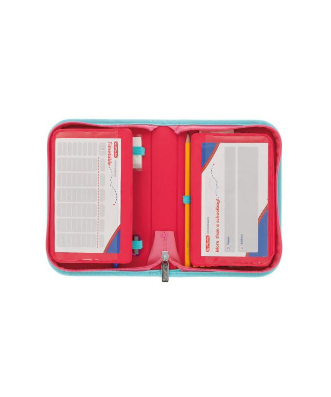 Fotrollë e mbushur Herlitz Ballet Love – 31 pjesë, ideale për nxënës që kërkojnë funksionalitet dhe dizajn elegant. E punuar nga poliester cilësor, me 2 flapa dhe hapje të plotë, ofron organizim të shkëlqyer për mjete shkrimi. Përmban 31 artikuj, përfshirë lapsa druri të certifikuar FSC dhe stilolapsa felt, me shtresë të brendshme me ngjyra për përdorim praktik dhe pamje të këndshme.