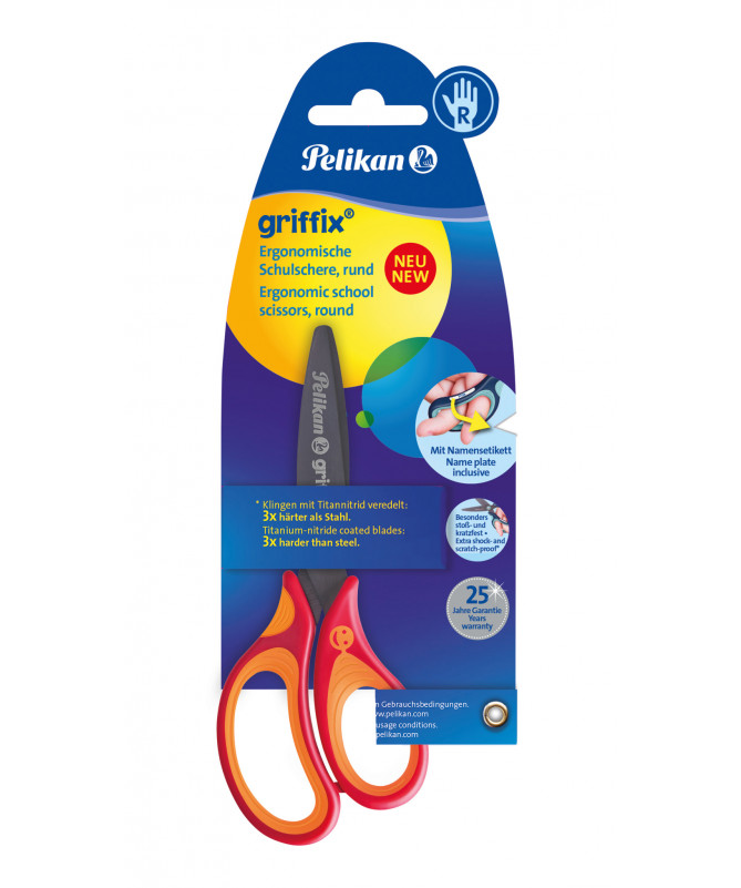Gërshërë shkollore Pelikan griffix të dizajnuara posaçërisht për fëmijë që janë në fazën e parë të të mësuarit të prerjes. Majat e rrumbullakëta dhe dizajni ergonomik ofrojnë siguri maksimale dhe rehati gjatë përdorimit, duke ndihmuar në zhvillimin e koordinimit dorë–sy.