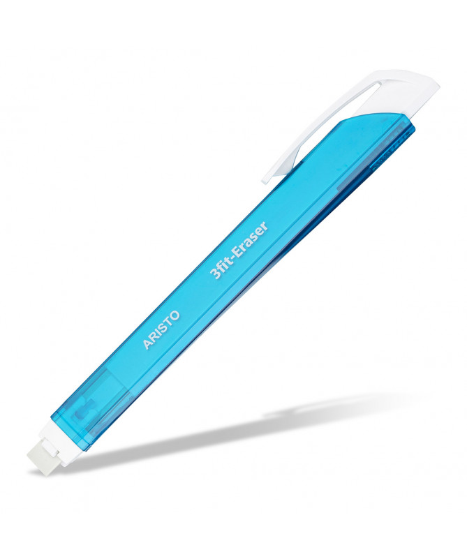 Gomë në formë lapsi Aristo 3Fit, e dizajnuar për fshirje të saktë dhe të kontrolluar të vijave të lapsit dhe lapsave me ngjyrë. Mekanizmi me shtypje lejon nxjerrje graduale të gomës, duke mundësuar përdorim praktik dhe jetëgjatësi më të madhe.
