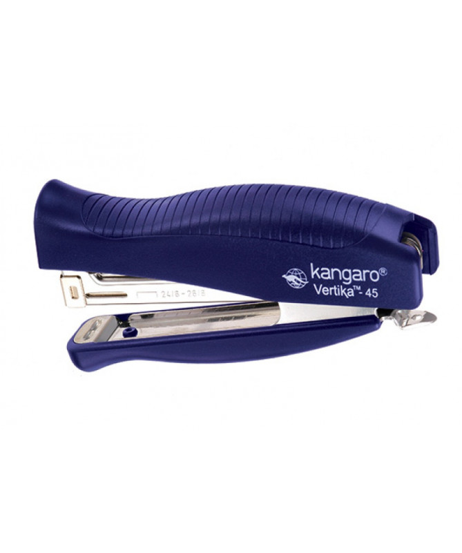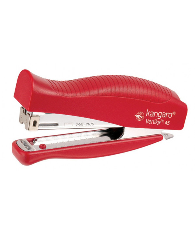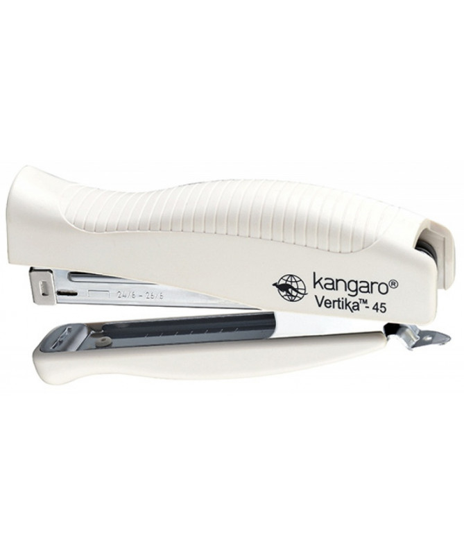 Heftmakina KANGARO Vertika-45 është e përshtatshme për përdorim në zyrë dhe në shtëpi. Dizajni i saj lejon qëndrim vertikal, duke kursyer hapësirë në tavolinë dhe duke e bërë praktike për organizim.
