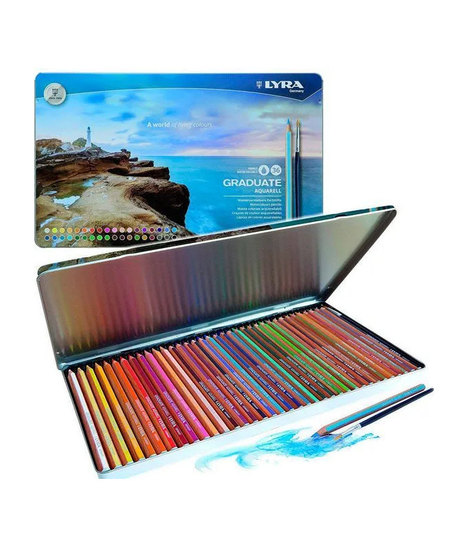 Lyra Graduate Aquarell janë lapsa akvarel me cilësi të lartë, të krijuar për vizatime kreative dhe efekte uji. Të prodhuar nga druri i certifikuar PEFC, këta lapsa mprehen lehtë dhe kanë minë 3.3 mm shumë rezistente.
