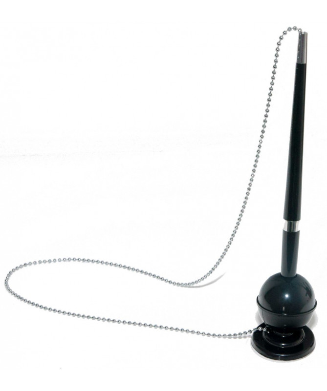 Laps ballpoint statik me zinxhir metalik, i projektuar për përdorim në sportele, banka, zyra, posta dhe ambiente publike. Vendoset në pozicion vertikal dhe pajiset me bazë vetëngjitëse për fiksim të qëndrueshëm mbi tavolinë apo banak. Zinxhiri metalik parandalon humbjen dhe siguron përdorim të kontrolluar në ambiente me qarkullim të lartë. Dizajn elegant dhe funksional, i përshtatshëm për përdorim intensiv. Maja me rruazë tungsteni garanton shkrim të qëndrueshëm dhe jetëgjatësi të lartë, ndërsa trashësia 0.7 mm mundëson shkrim të qartë. Boja blu ofron lexueshmëri të mirë për përdorim të përditshëm profesional.