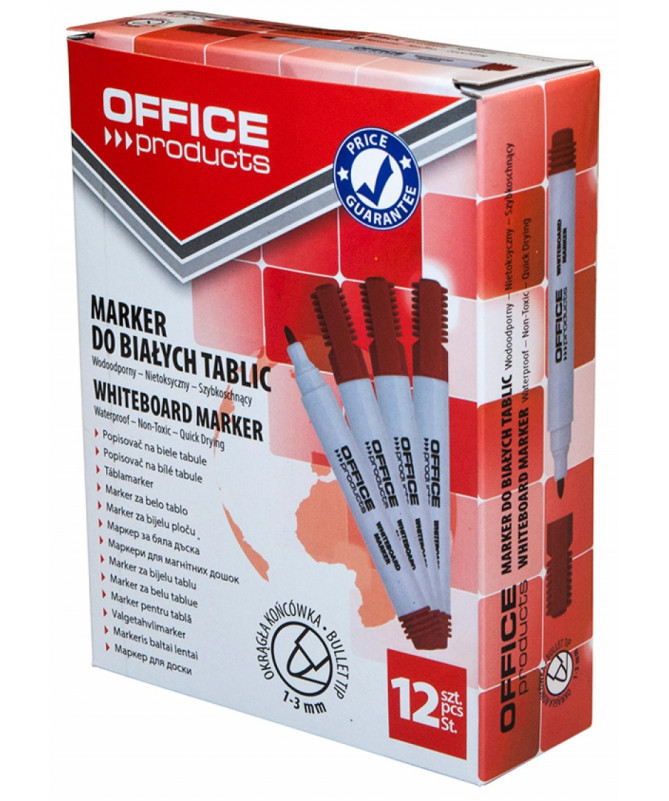 Boardmarkera OFFICE PRODUCTS është e përshtatshme për shkrim dhe vizatim në tabela të bardha dhe në sipërfaqe të tjera jo poroze. Siguron shkrim të qartë dhe të lexueshëm, me bojë që thahet shpejt dhe fshihet lehtësisht pa lënë gjurmë apo hije.