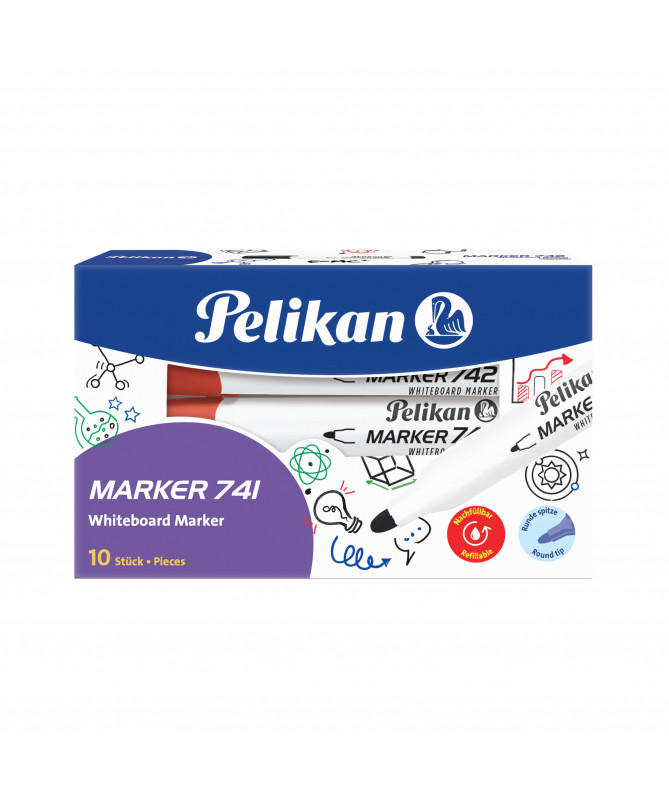 Marker për Whiteboard Pelikan 741, i kuq, majë e rrumbullakët