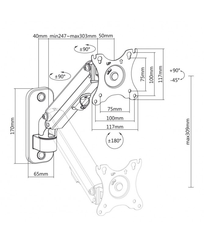 Mbajtës ART AR-85 LCD/LED TV MOUNT 32-70" 45KG VERTICAL/HORIZONTAL ADJUSTMENT 59,19 €