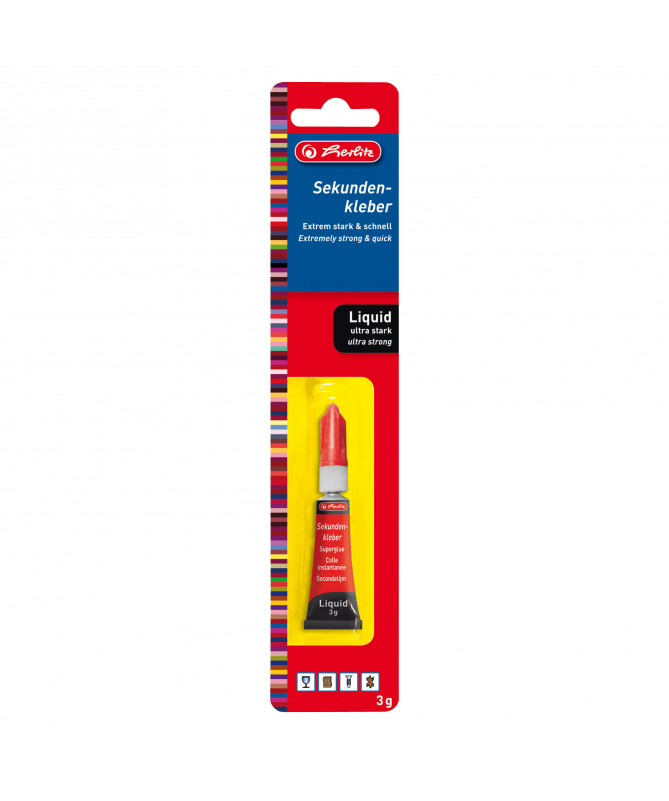 Super ngjitës Herlitz Liquid 3 g është ngjitës i fuqishëm me bazë cyanoacrylate, i cili siguron ngjitje të menjëhershme dhe shumë të fortë. I përshtatshëm për ngjitjen e shumicës së materialeve si plastika, metali, goma, qeramika dhe materiale të tjera të forta. Vjen në tub alumini 3 g për aplikim preciz dhe të kontrolluar.