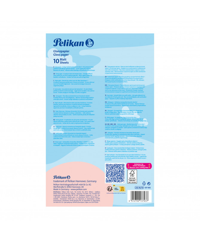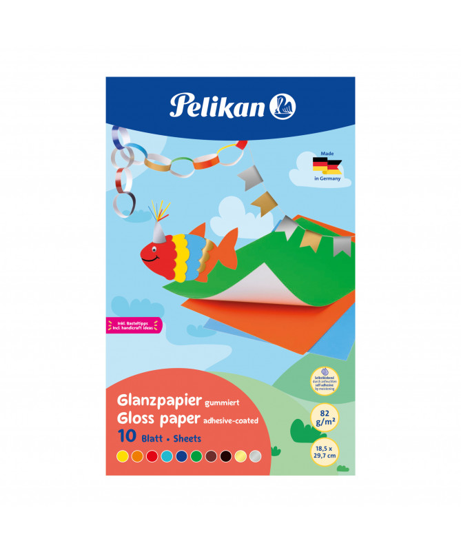 Letër me shkëlqim, vetëngjitëse Pelikan është ideale për aktivitete kreative, projekte shkollore dhe punë dore për fëmijë. Fletët kanë sipërfaqe me shkëlqim dhe shtresë ngjitëse që aktivizohet me lagështi, duke e bërë përdorimin të lehtë dhe të pastër.