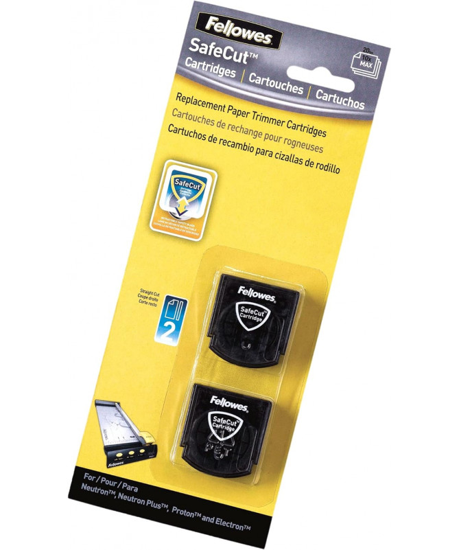 Set me 2 tehe zëvendësuese FELLOWES SafeCut për prerje të drejtë dhe precize. Të dizajnuara për përdorim të sigurt, çdo teh është i mbyllur në kasetë mbrojtëse SafeCut, duke ekspozuar tehun vetëm gjatë përdorimit. Ideale për zëvendësim të shpejtë dhe punë të rregullta në zyrë ose shkollë.