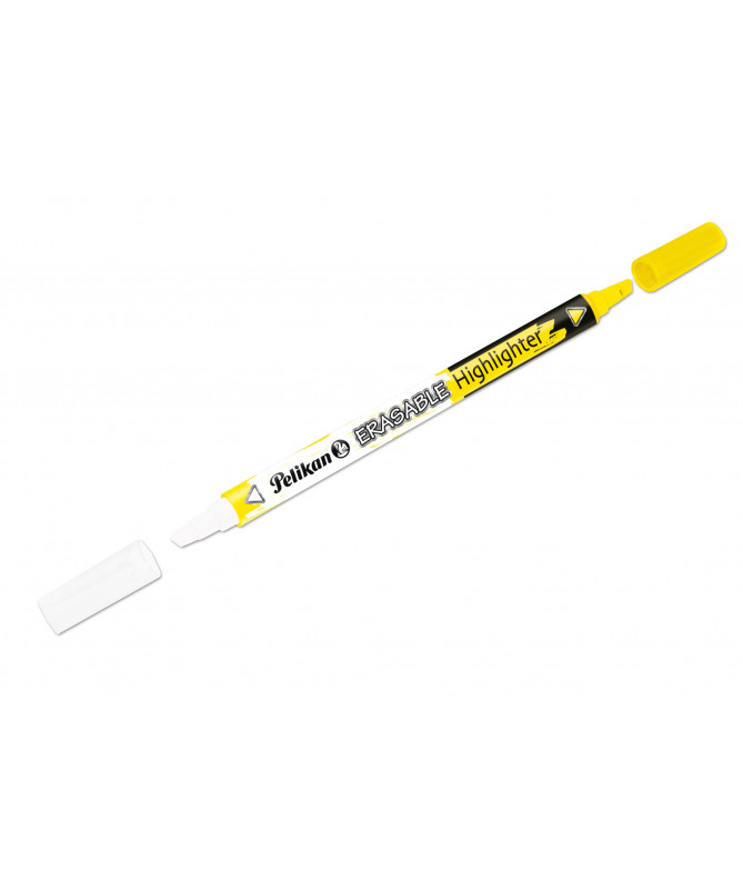 Tekstmarker Pelikan Erasable Highlighter 456 në ngjyrë të verdhë, me funksion inovativ 2-në-1, që kombinon tekstmarkerin dhe majën për fshirje në një produkt të vetëm. Lejon theksimin e tekstit në mënyrë të qartë dhe të dukshme, si dhe korrigjimin e shpejtë të shënimeve falë majës së bardhë për fshirje, pa dëmtuar letrën. Maja e pjerrët ofron 3 trashësi shkrimi, duke e bërë të përshtatshëm për nënvizime precize ose theksime më të gjera. Dizajni praktik dhe formati i lehtë e bëjnë ideal për përdorim të përditshëm në shkollë, zyrë dhe studim. I paketuar në display prej 50 copësh, i përshtatshëm për shitje me pakicë. Prodhuar në Gjermani.