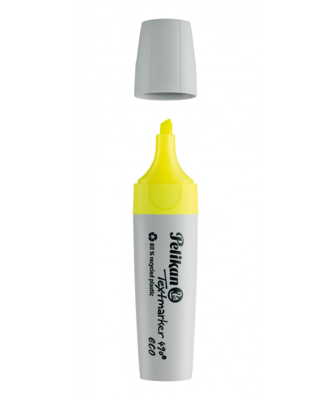 Tekstmarker Pelikan Textmarker 490 Eco në ngjyrë e verdhë neon, i paketuar në set prej 10 copësh (folding box), ideal për theksim shumë të dukshëm dhe me kontrast të lartë të tekstit. Boja me bazë uji siguron ndriçim intensiv dhe transparencë të mirë, duke e mbajtur tekstin të lexueshëm dhe pa depërtuar në shumicën e llojeve të letrës.